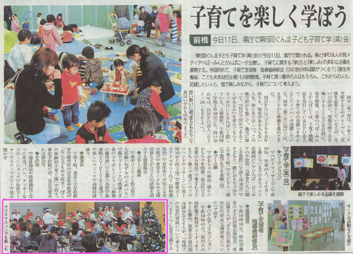 群馬子育て学(楽)会 クリスマスコンサート 於:県庁ホール