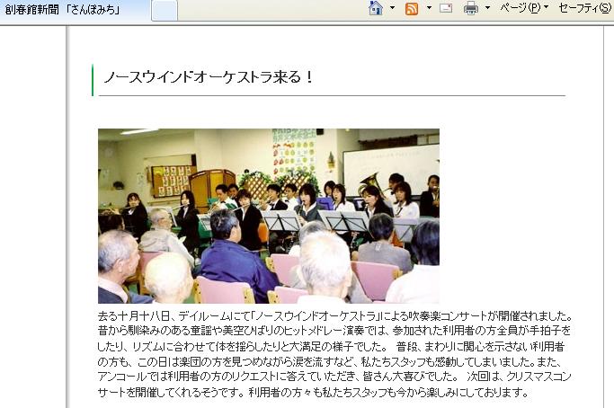 去る十月十八日、デイルームにて「ノースウインドオーケストラ」による